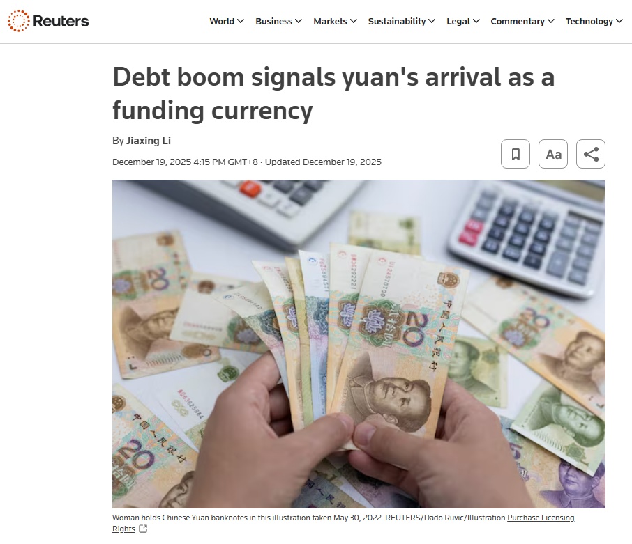 路透社近期报道称,投资者正在大规模购买人民币信贷资产,表明人民币正在成为全球融资货币。银行人士表示,人民币持有和消费需求的不断增长,标志着人民币国际化进程取得重大突破。